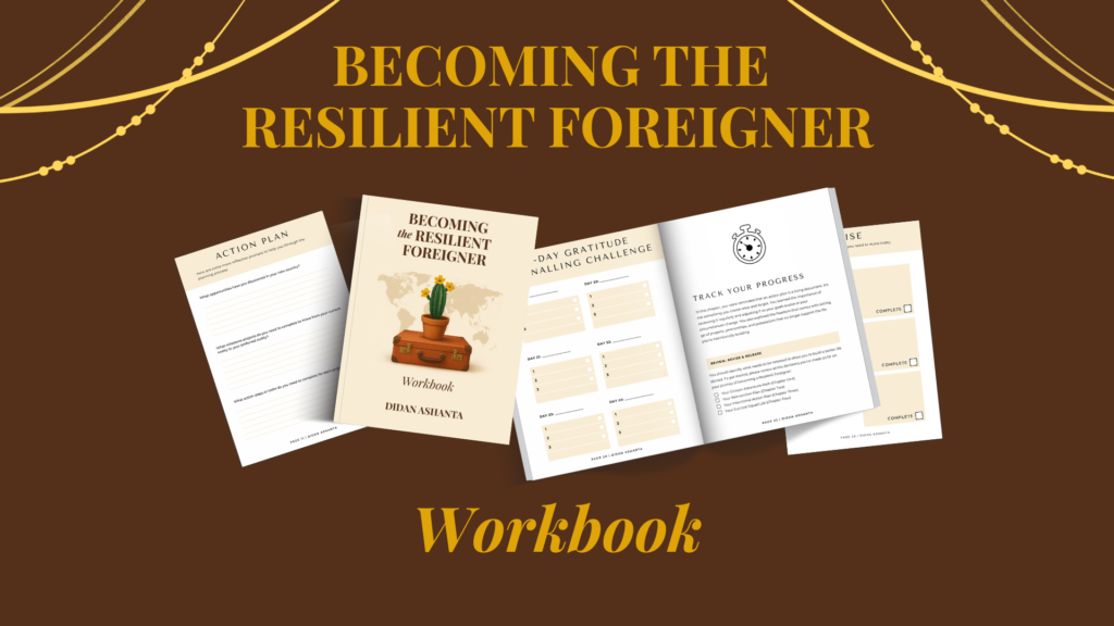As a thank-you for being a reader, you’re invited to download the FREE Becoming the Resilient Foreigner Workbook – a curated set of downloadable worksheets delivered via email to support you as you apply what you learn.